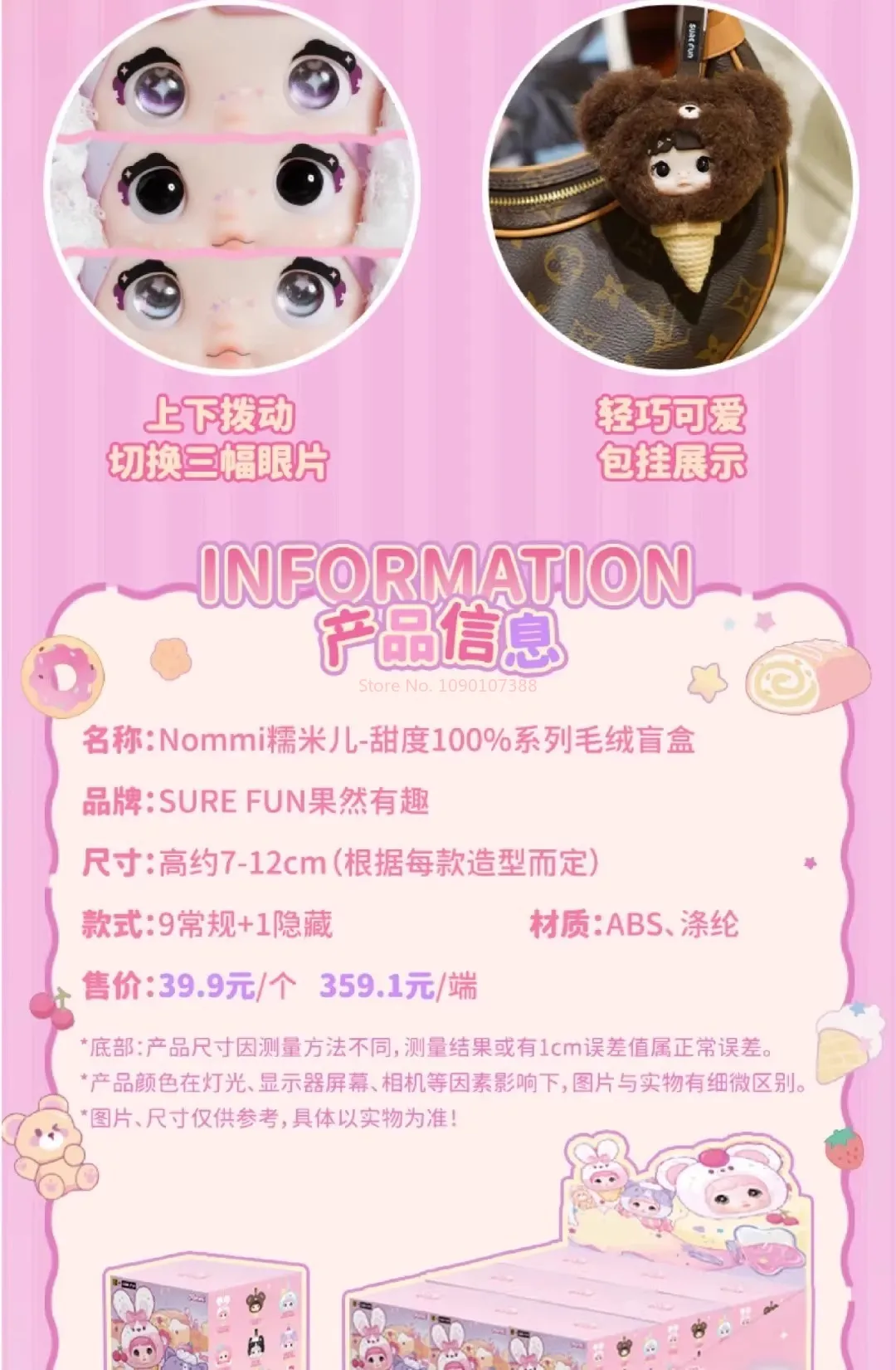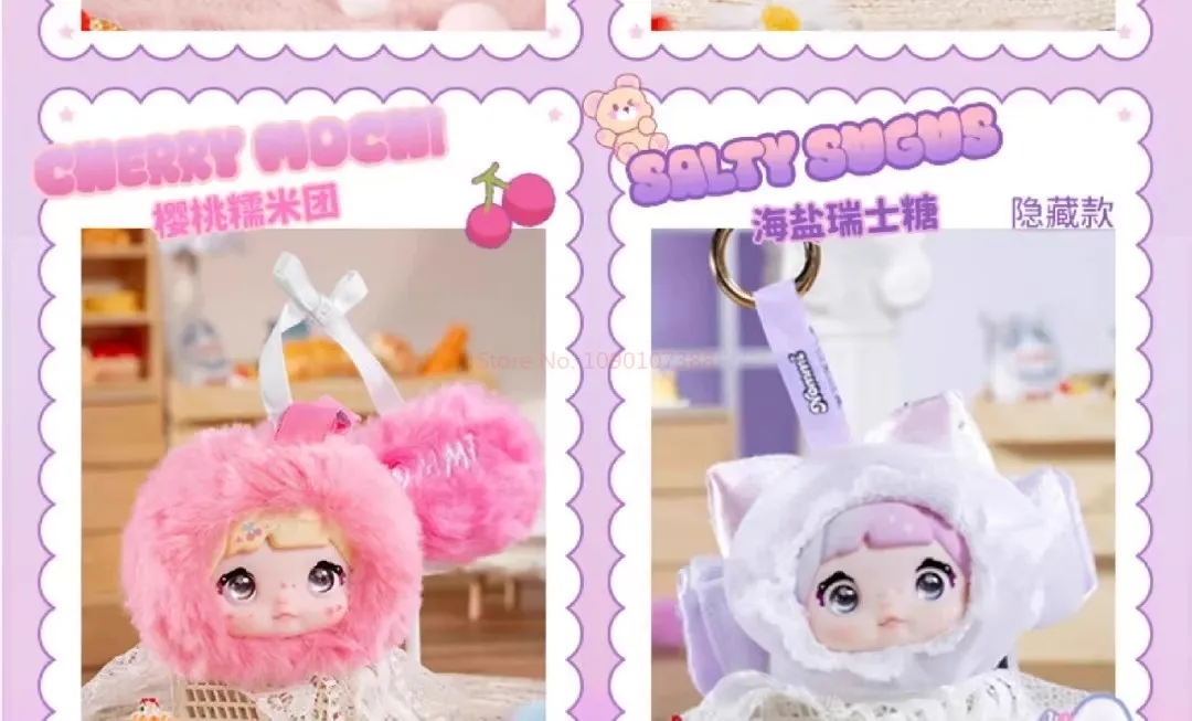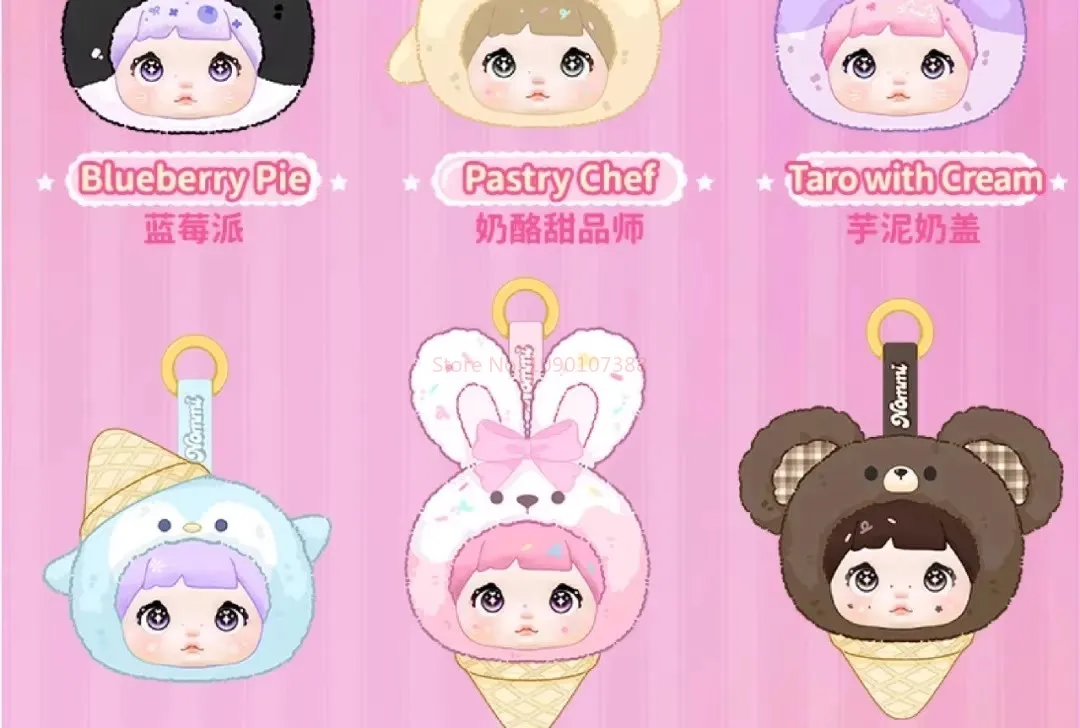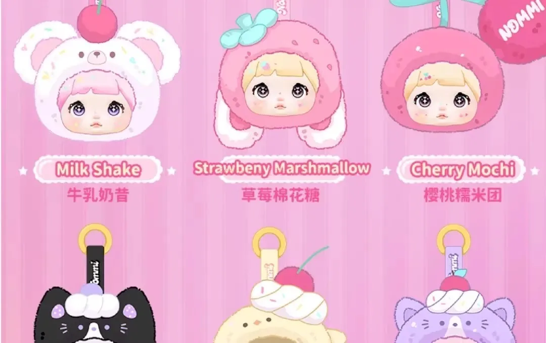 Each blind box contains one random plush pendant from the Nommi Sweetness 100% Series, featuring: